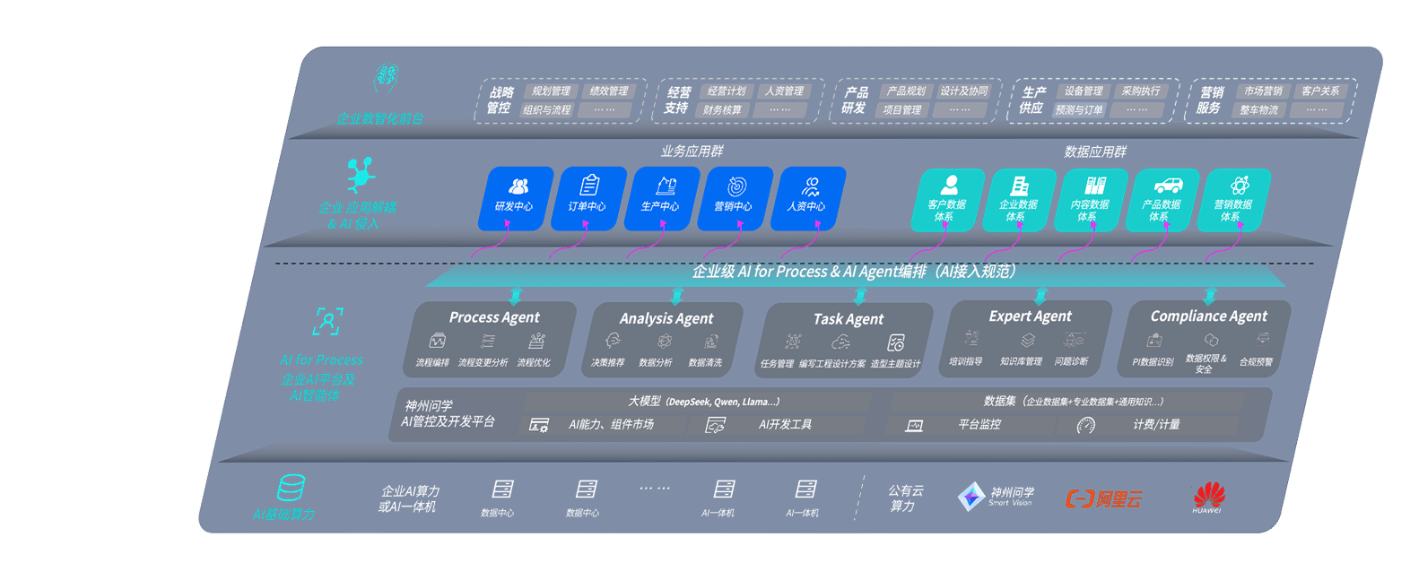 九鼎国际问学智车解决方案是一套基于AI技术的汽车行业智能化系统,,,覆盖从底层算力到顶层AI应用的全栈方案。。。方案由算力层、、、模型层和应用层组成:算力层,,方案支持多种一体机配置,,,,具备云端灵活部署、、、、多云适配以及动态优化计算资源的能力;模型层,,,,九鼎国际问学平台版提供了企业级AI应用一站式构建与管理平台,,支持基于后训练强化技术的汽车企业专属模型的训练、、、评测和运营;应用层,,,,九鼎国际问学DeepSeek版提供包括超级员工、、、、智能招采、、智能营销、、、智能客服、、、、AI for BI等一系列解决方案,,,可助力汽车行业实现数字化转型,,,让管理更智能、、、响应更敏捷。。。